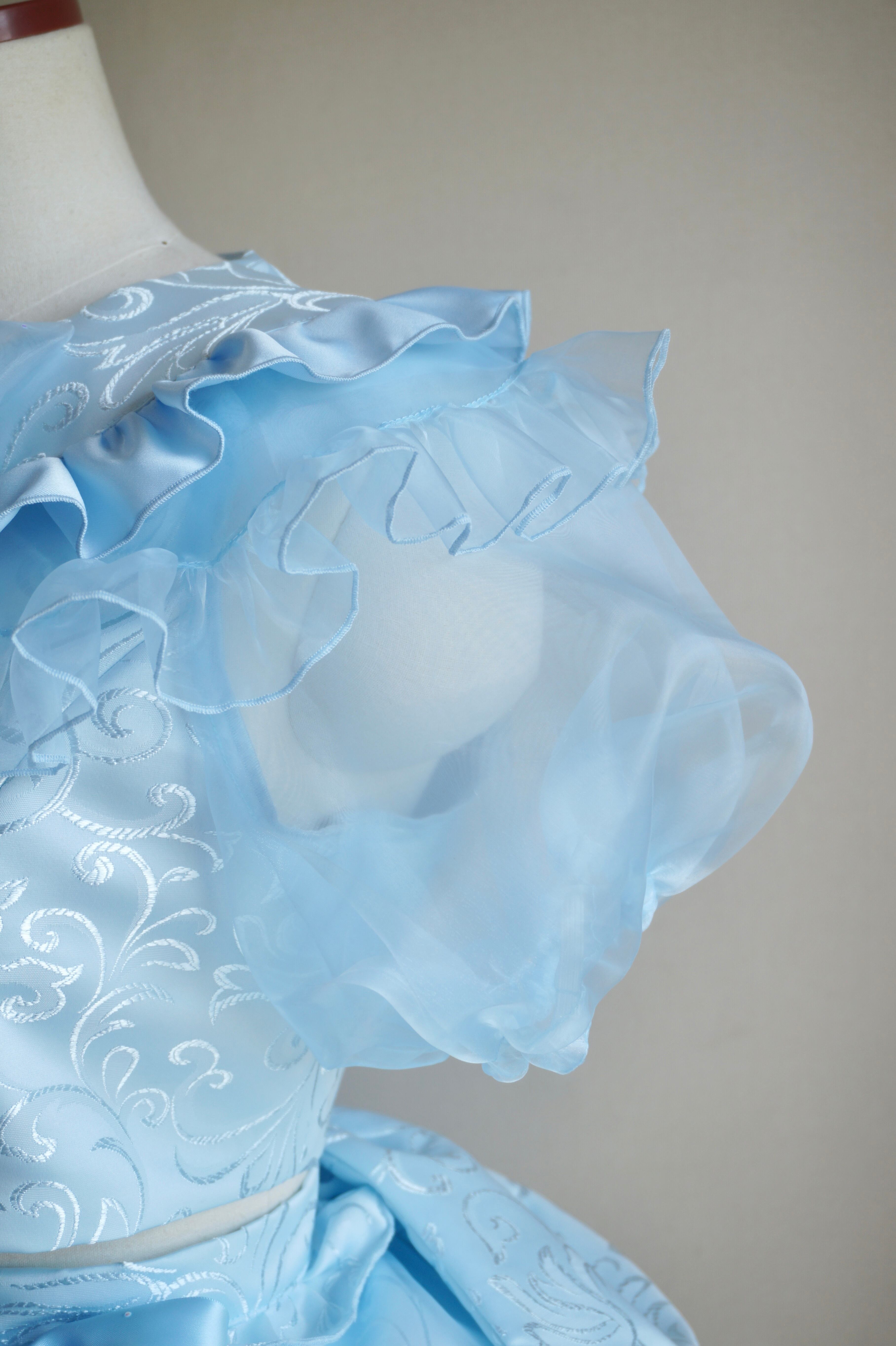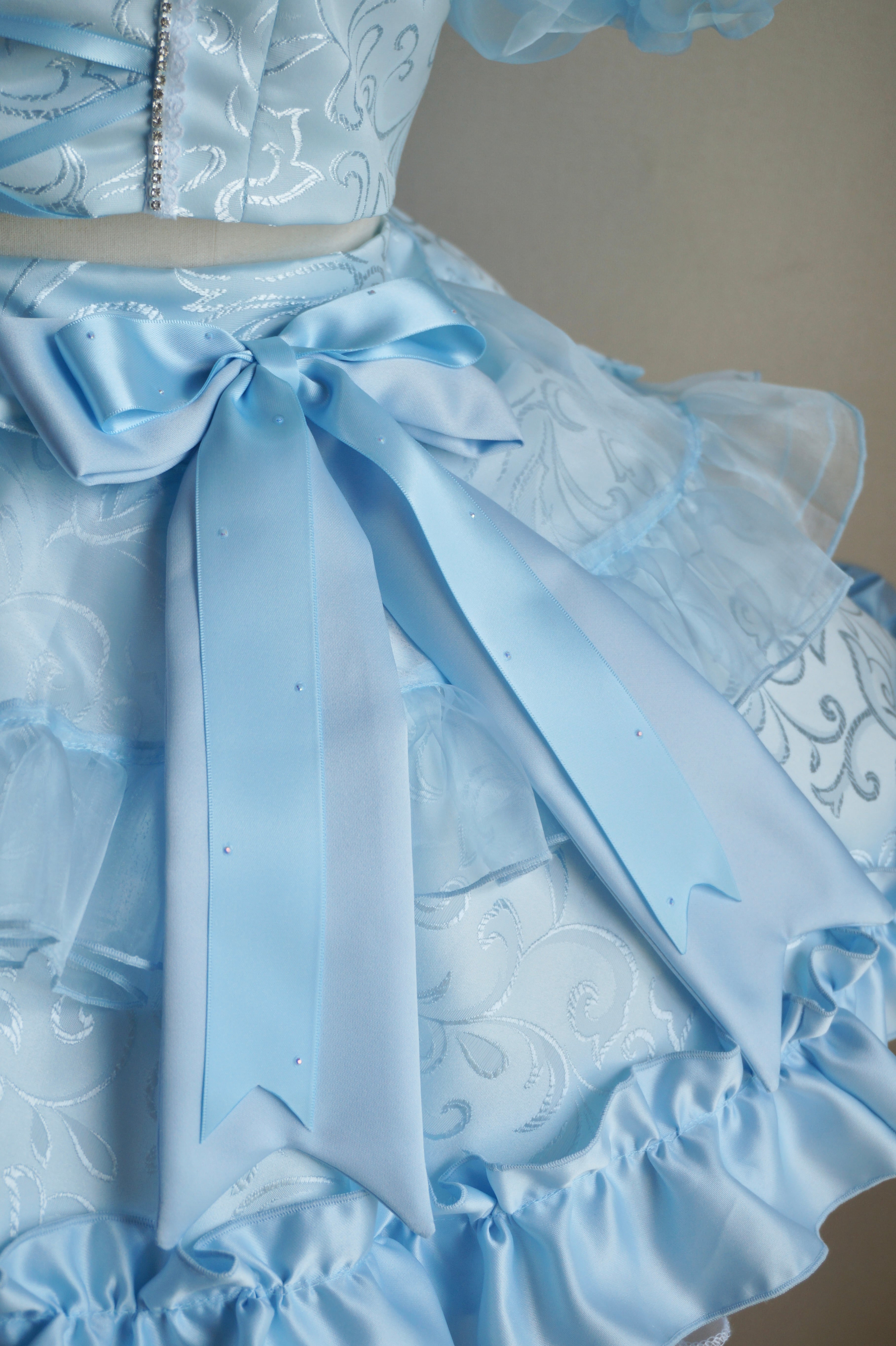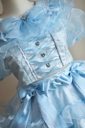 とっても涼しげな夏っぽい衣装です♡!ふわふわとしていて、ライトに当たるとキラキラするオーガンジーをいたるところに使用していてステージ映え間違いなしです!!