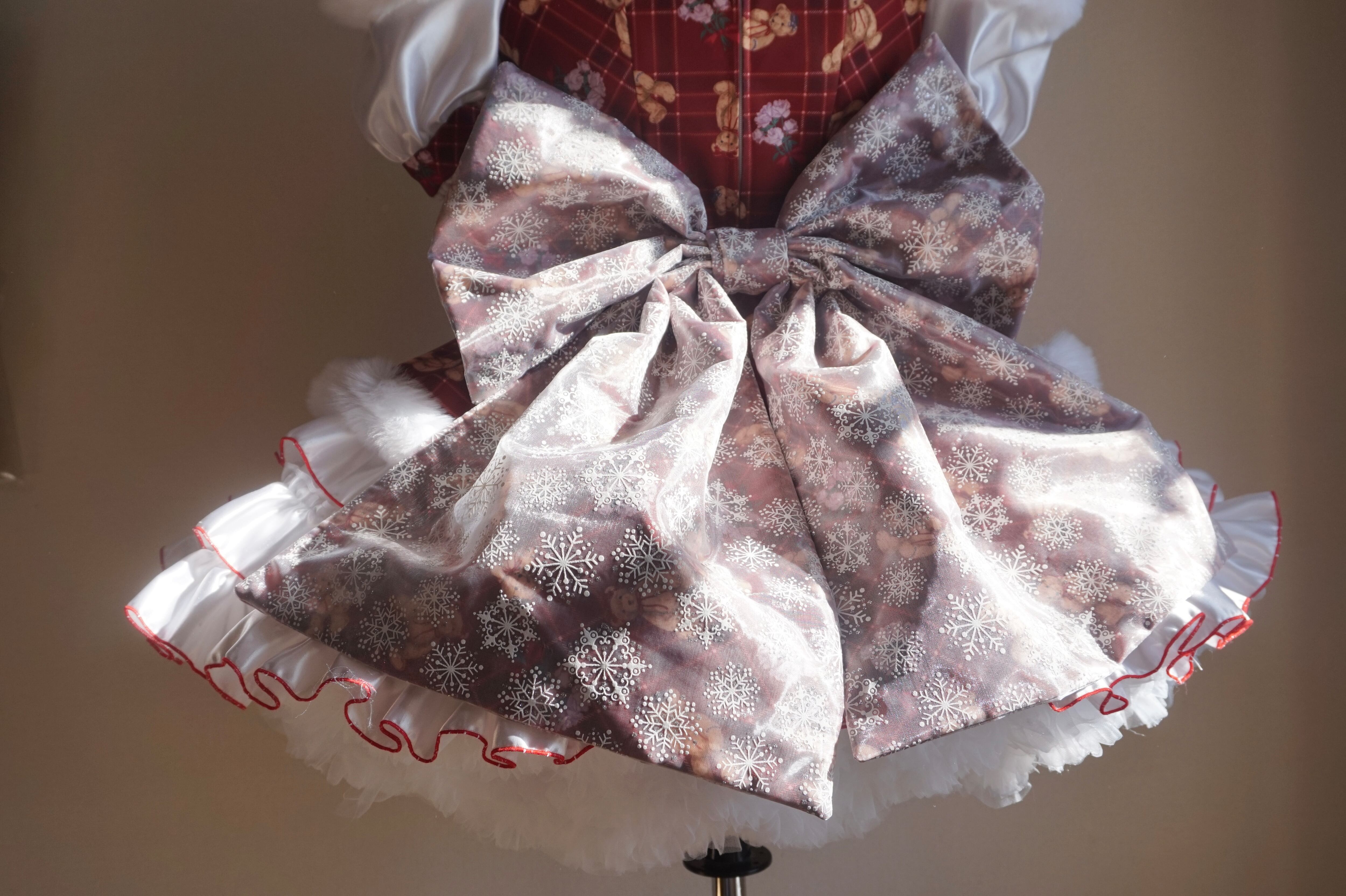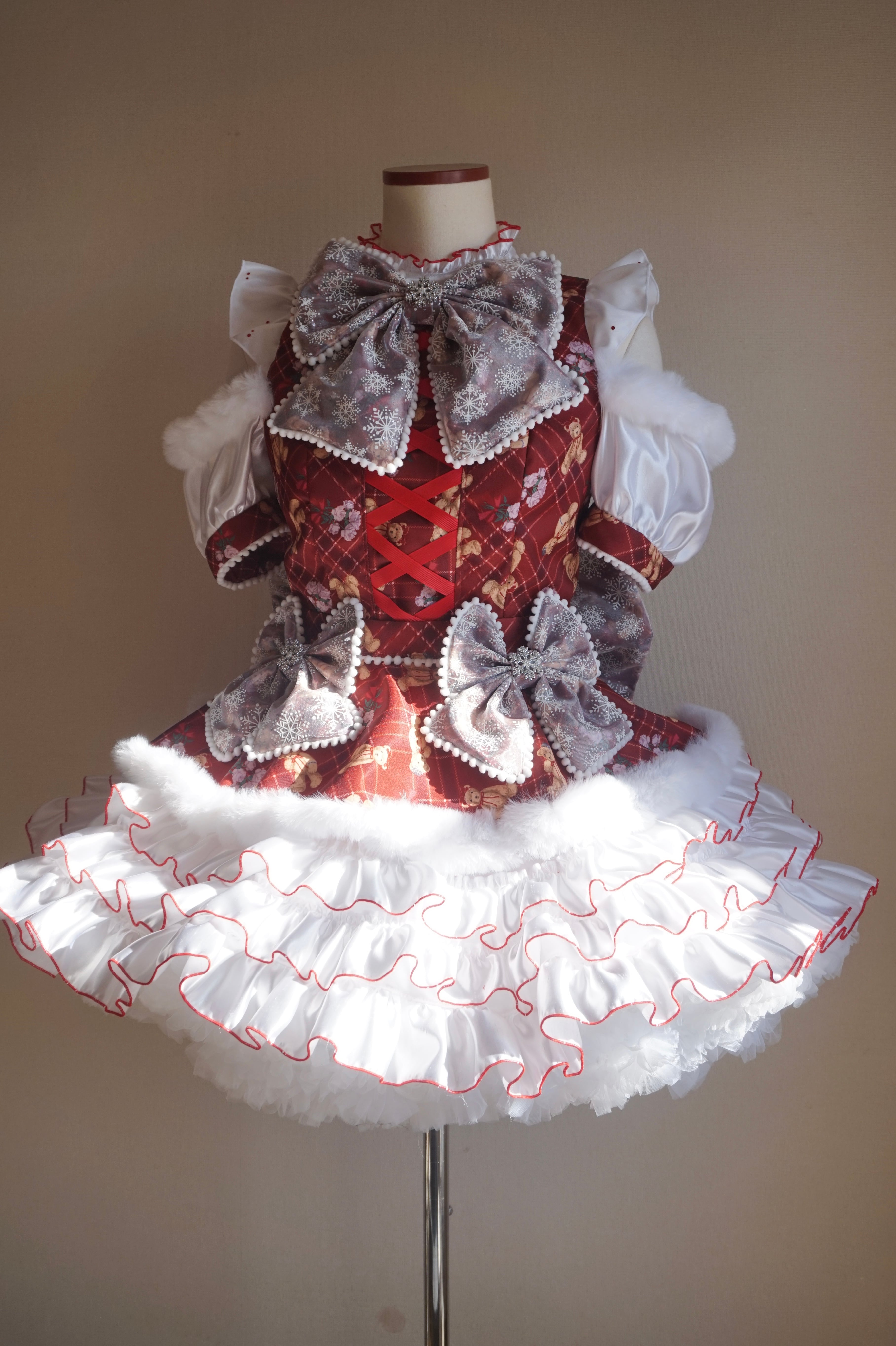 赤×チェックが王道アイドル感を演出!白のファーや雪の結晶のモチーフで可愛らしく冬の雰囲気を醸し出してます♡スカートのフリルを沢山つけたのがポイントです!♡首元、両腰、背中にリボンが4っつも付いているのも贅沢に可愛いポイントです♡